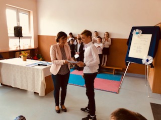 Dnia 27 kwietnia 2018 r. wicedyrektor Marzena Gołuchowska w imieniu dyrektora Sportowej Szkoły Podstawowej nr 2 z Oddziałami Integracyjnymi w Tczewie pana Roberta Kraski wręczyła uczniom