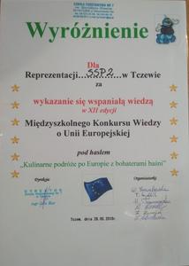 Międzyszkolny Konkurs Wiedzy o Unii Europejskiej kl. III Miło nam poinformować, że uczniowie klasy 3a i 3b Mikołaj D., Agata Z., Kryspin Ż. uzyskali wyróżnienie w Międzyszkolnym Konkursie Wiedzy o Unii Europejskiej. Gratulujemy Galeria zdjęć Powiązane wiadomości Wojewódzki Projekt "Ortograficzne łamigłówki" XV DZIEŃ INTEGRACJI Miejski Konkurs Recytatorski "Mój ulubiony wiersz" Międzyszkolny Konkurs Wiedzy o Unii Europejskiej... Wizyta Księdza Biskupa w naszej szkole Dzień Mamy kl. 3d Drukuj Udostępnij Data dodania: 04.06.2018 Wyświetlono: 494 Aktualności
