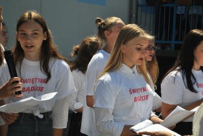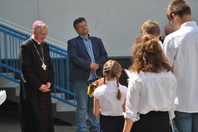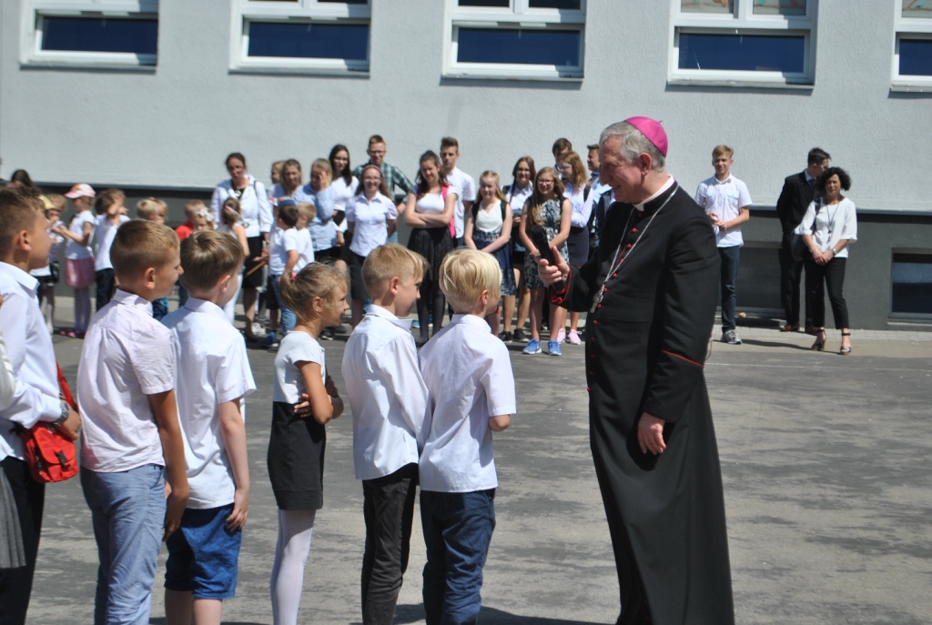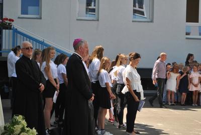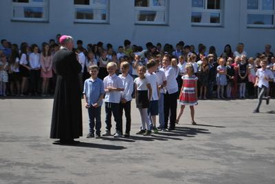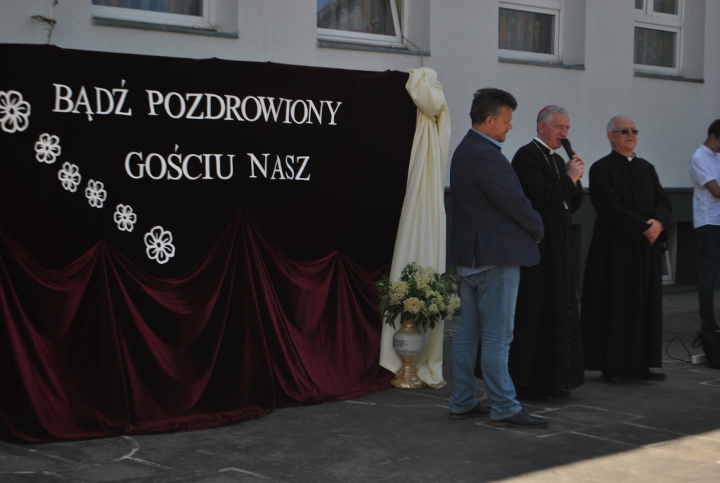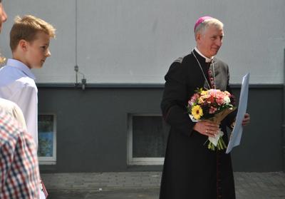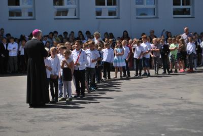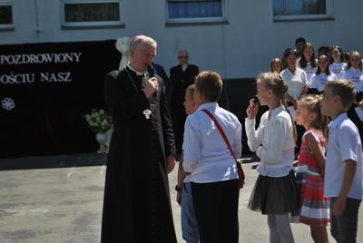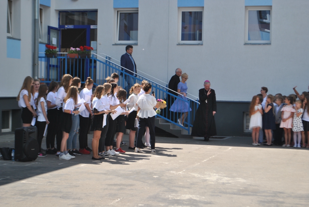 Słowami piosenki "Bądź pozdrowiony Gościu nasz" wyraziliśmy radość z obecności Księdza Biskupa wśrod nas - uczniów i nauczycieli Sportowej Szkoły Podstawowej.