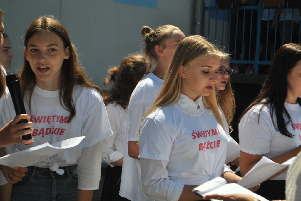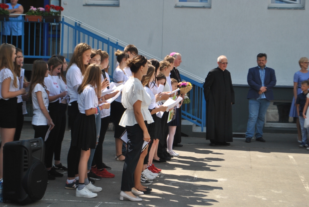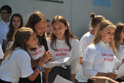 Oprócz miłych słów powitania przez pana dyrektora Roberta Kraskę i przedstawicieli uczniów klas I-III, IV-VI oraz klas gimnazjalnych mieliśmy okazję porozmawiać z naszym Gościem.