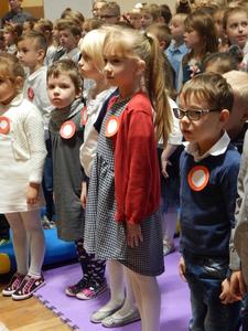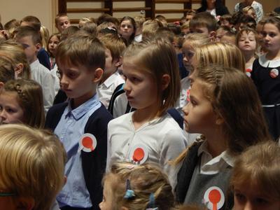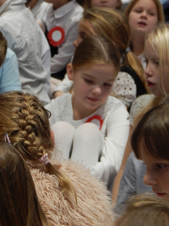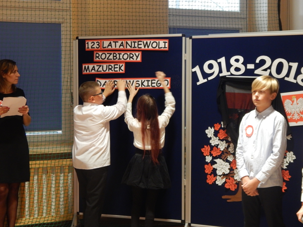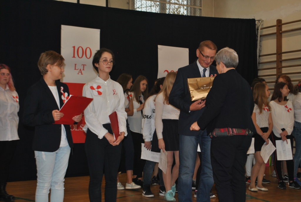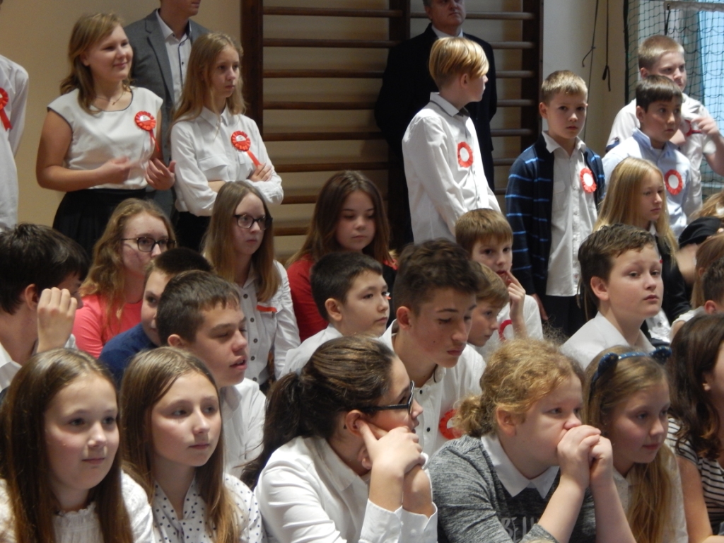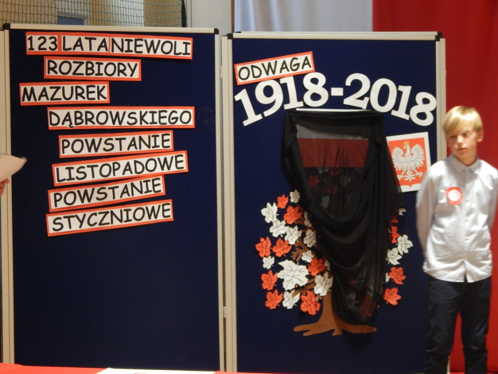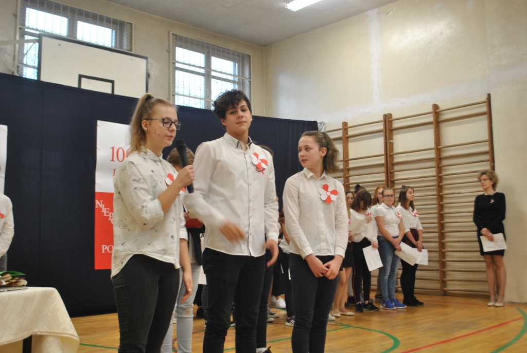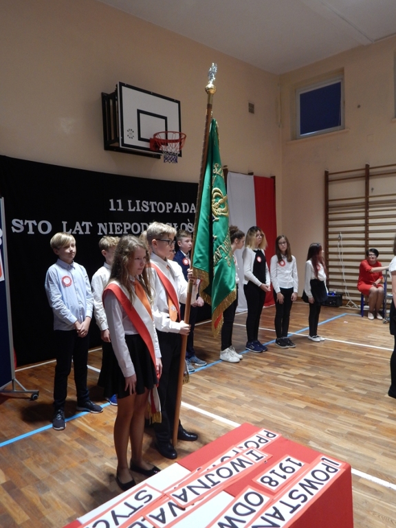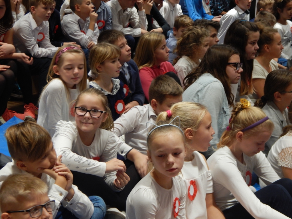 W tej wyjątkowej setnej rocznicy odzyskania przez Polskę niepodległości wzięli udział wszyscy uczniowie naszej szkoły. O symbolicznej godzinie 11.11 wszyscy odśpiewali 4 - zwrotkowy hymn narodowy, włączając się do wspólnej akcji zorganizowanej przez MEN "Rekord dla Niepodległej". Dodatkowo uczniowie klasy VIc przygotowali występ artystyczny, podczas którego upamiętnili heroiczną walkę Polaków o naszą wolność. Oddali hołd i cześć tym, którzy polegli na polu walki. Podziękowali za to, że "tylko z ksiąg historii poznajemy dziś niewolę".