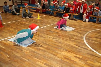 Uczniowie zmierzyli się z zadaniami stolikowymi, podczas których rozwiązywali podchwytliwe zadania matematyczne, szukali brakujących elementów obrazka, zbierali hasła z różnych dziedzin rozpoczynających się na podane litery oraz z konkurencjami sportowymi. Przy tych ostatnich nie zabrakło morza śmiechu oraz huraganowego dopingu z widowni. Niektóre z tych konkurencji to na przykład rzut śnieżką do celu, wyścigi saneczkowe czy workowy sprint. Nie zabrakło też konkurencji dla opiekunów, którzy musieli na czas wyciąć skomplikowane śnieżynki niezbyt sprawnymi nożyczkami